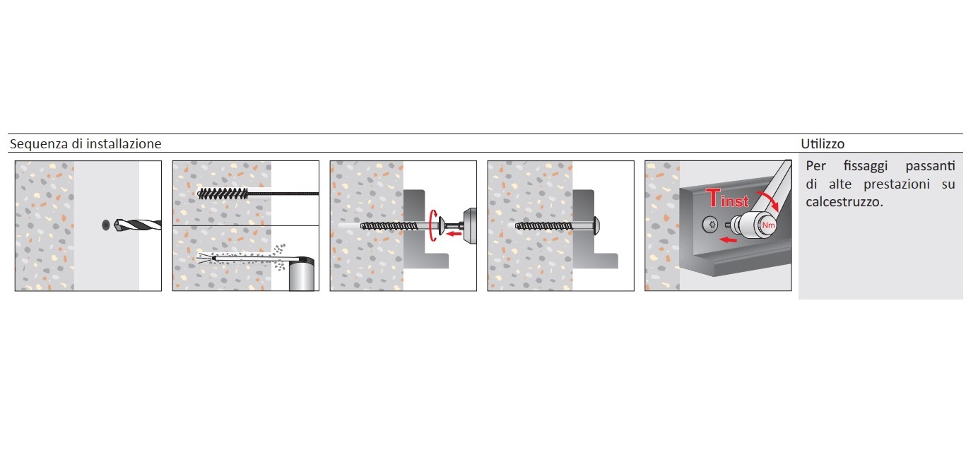 - Per fissaggi passanti di Alte Prestazioni su calcestruzzo.