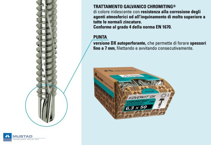 - Viti autoforanti ferro MUSTAD KOVERVIT zincate - ø x L mm 6,3x20
